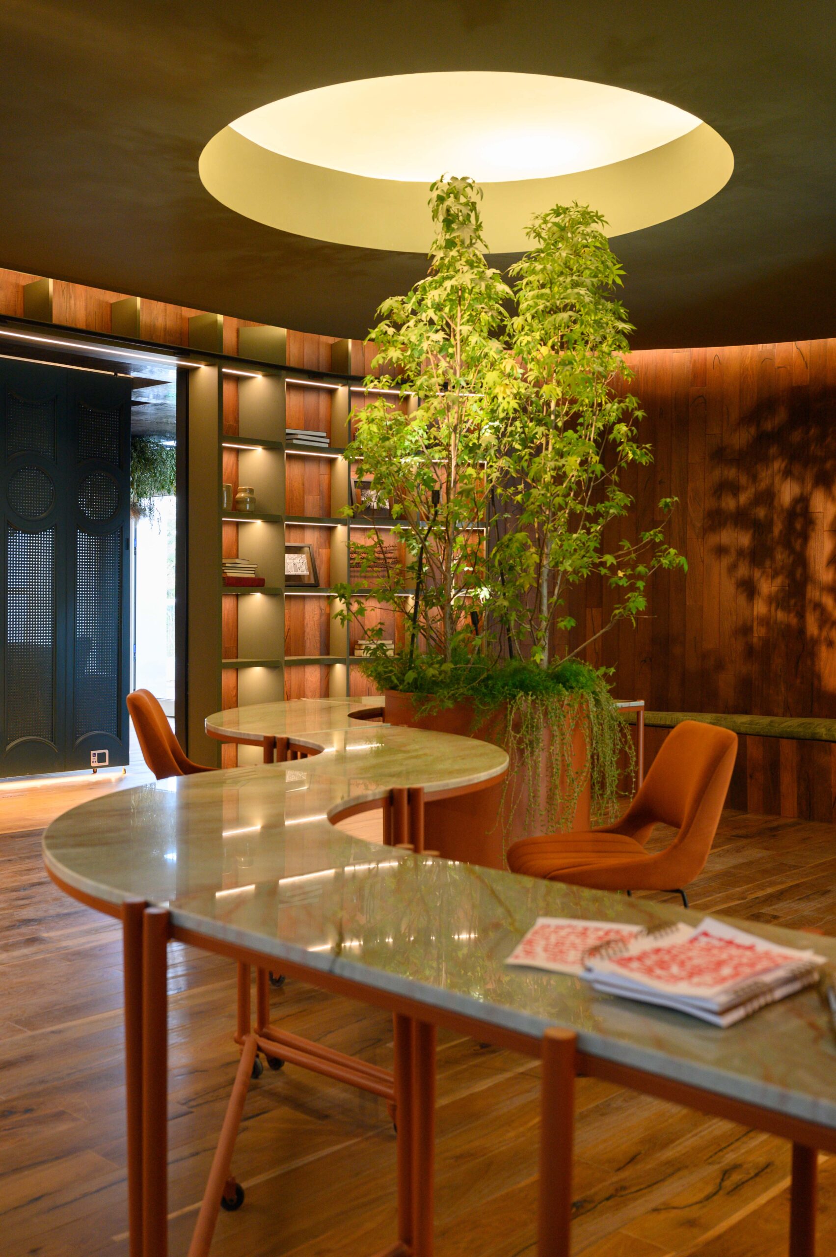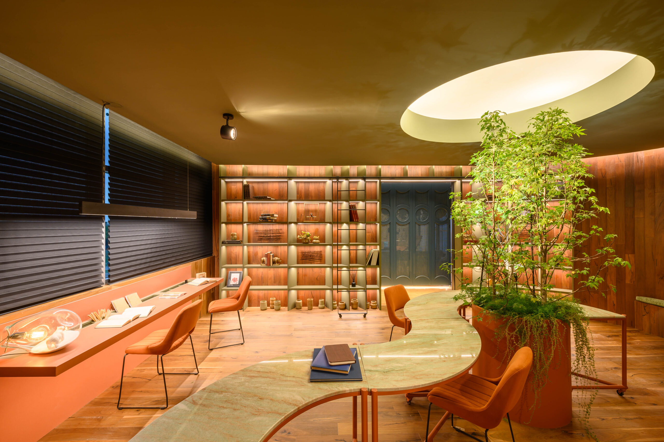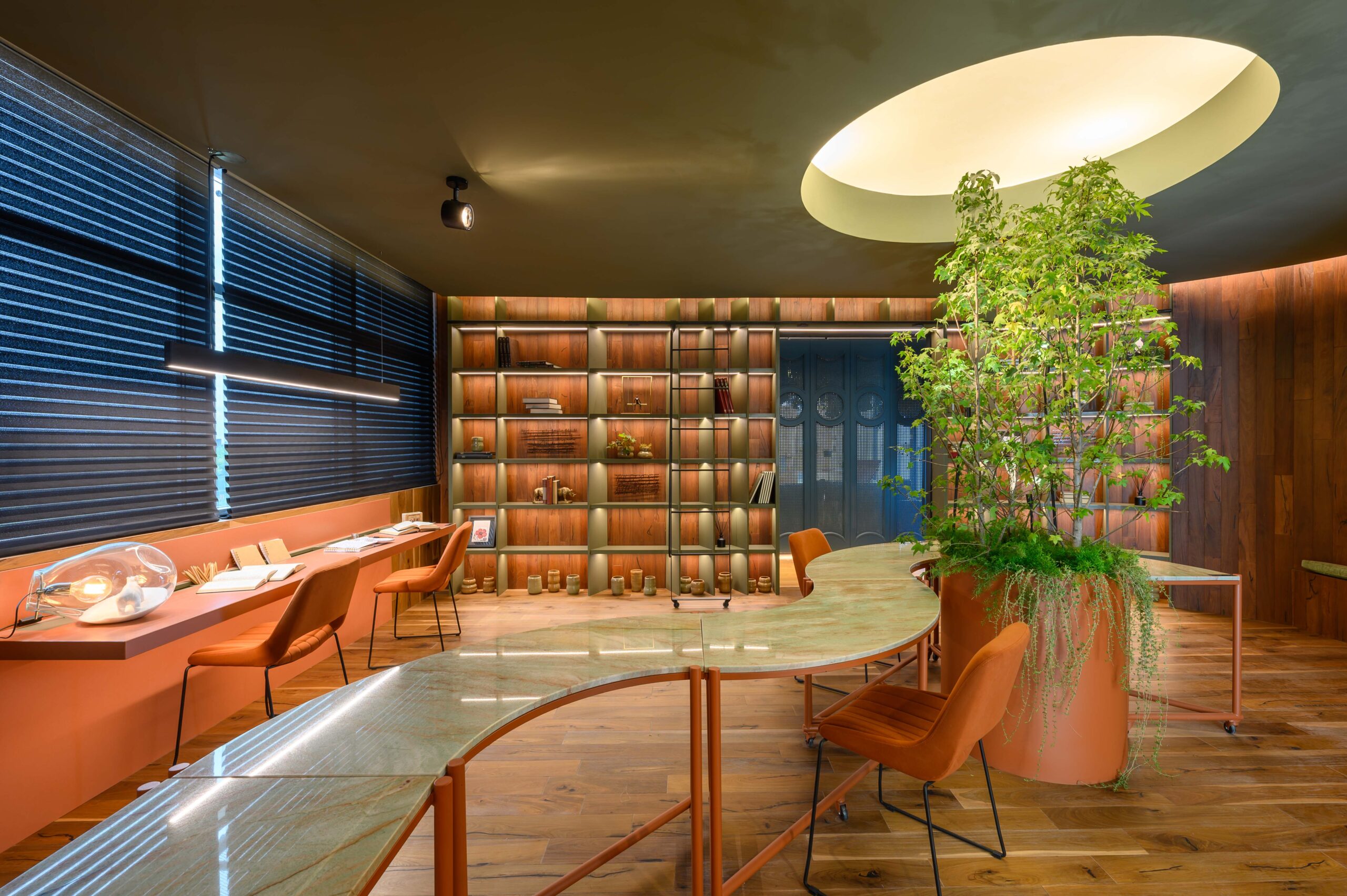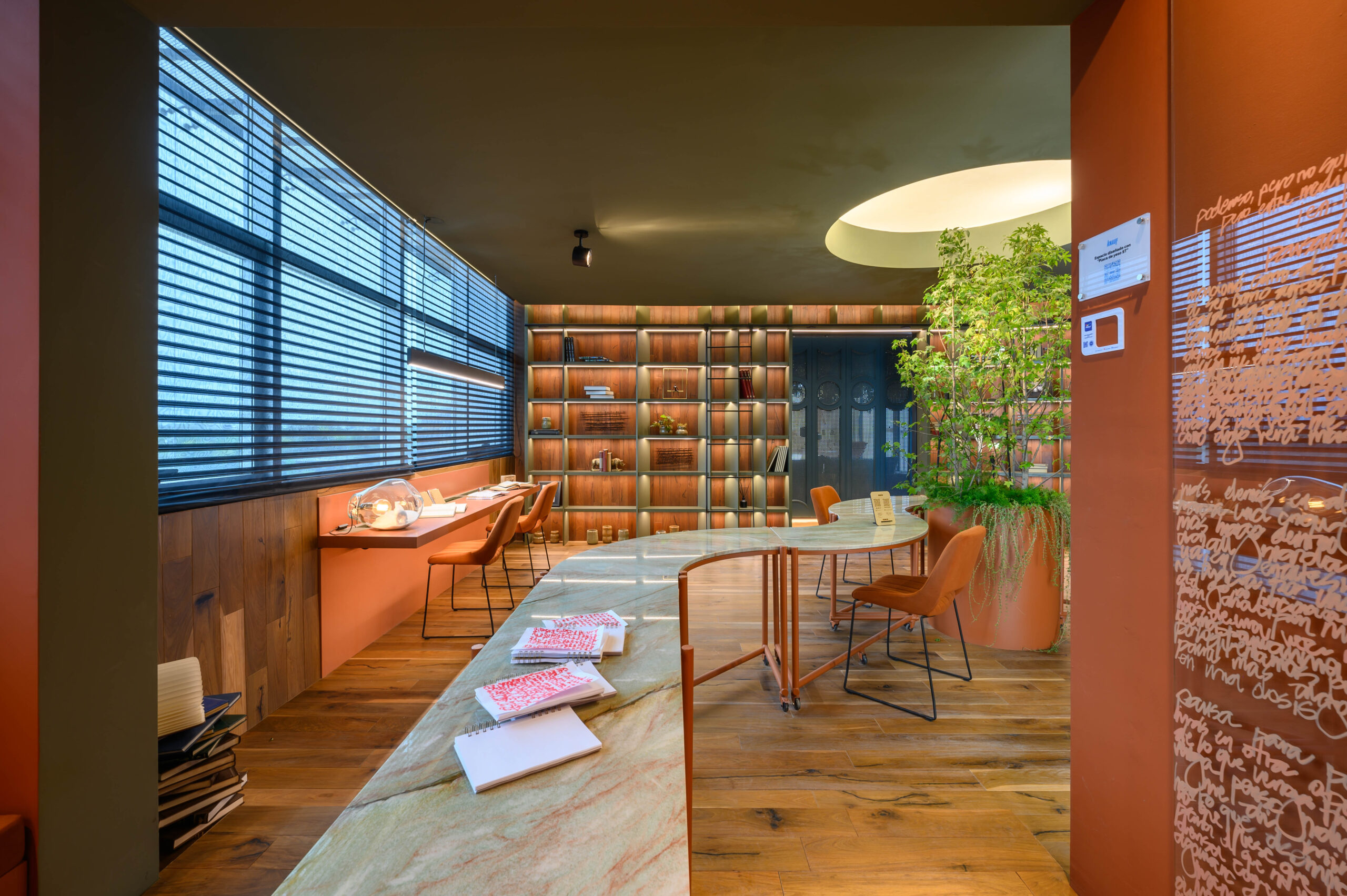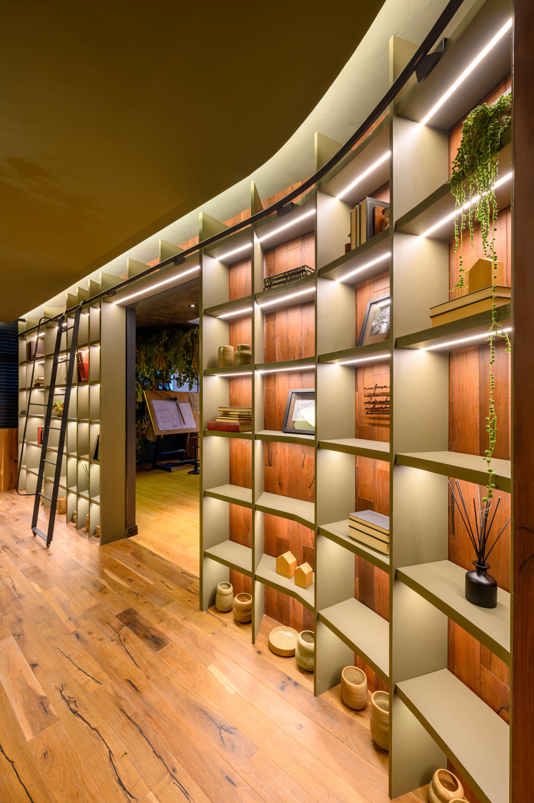 Diseñamos un estudio para un escritor que se inspira en el paisaje de Córdoba y la zona de Manantiales, buscando integrar el entorno natural al interior del estudio. Organizado alrededor de un mobiliario curvo, que remite a la Cañada de Córdoba, el espacio fluye de manera dinámica, guiado por la luz y las sombras que genera la vegetación y los materiales naturales como la cuarcita verde Gaya. Cada área invita a la reflexión y al disfrute de momentos significativos, con espacios flexibles para el trabajo y la distensión. La paleta de colores, que evoca el paisaje cordobés, refuerza la conexión entre el diseño y la identidad de nuestra región.