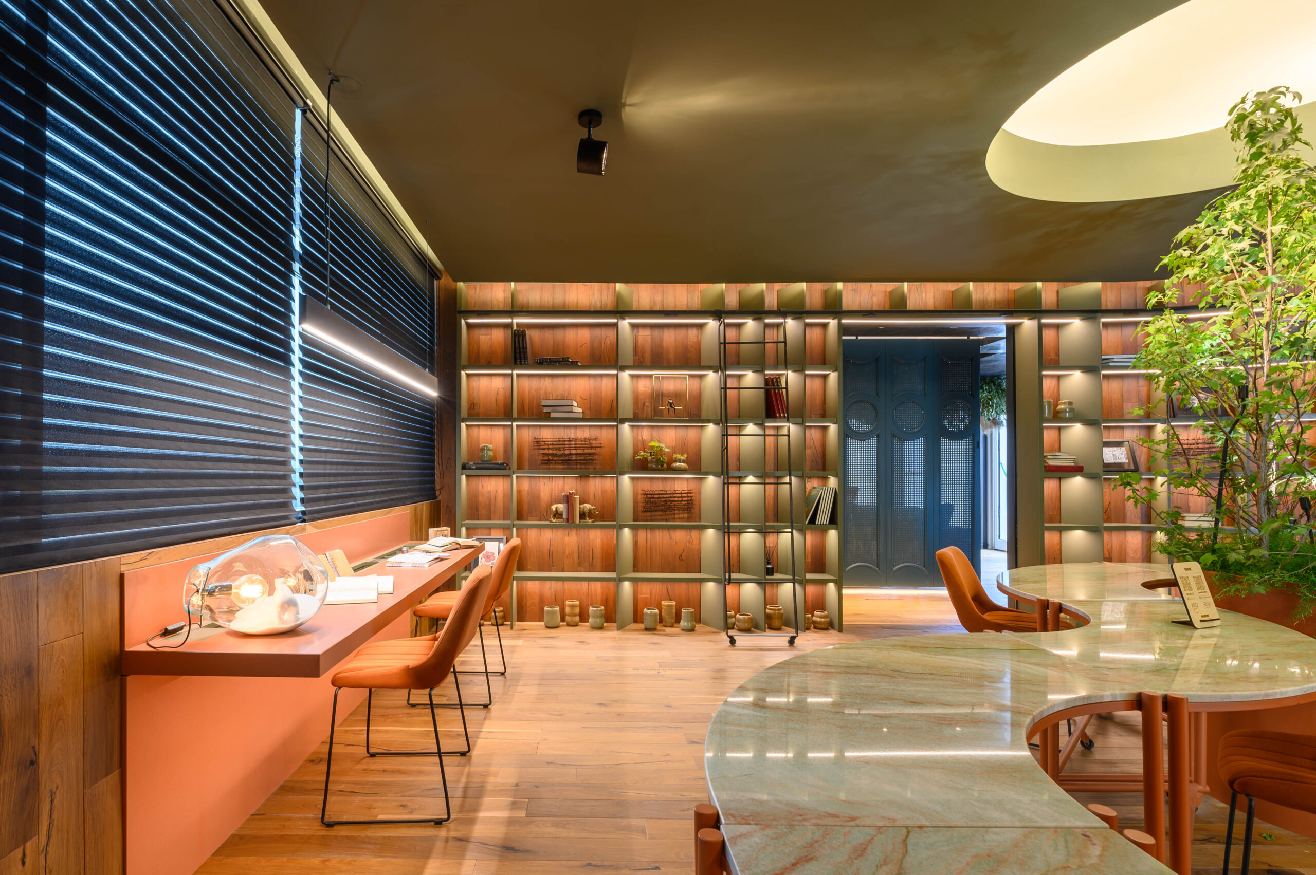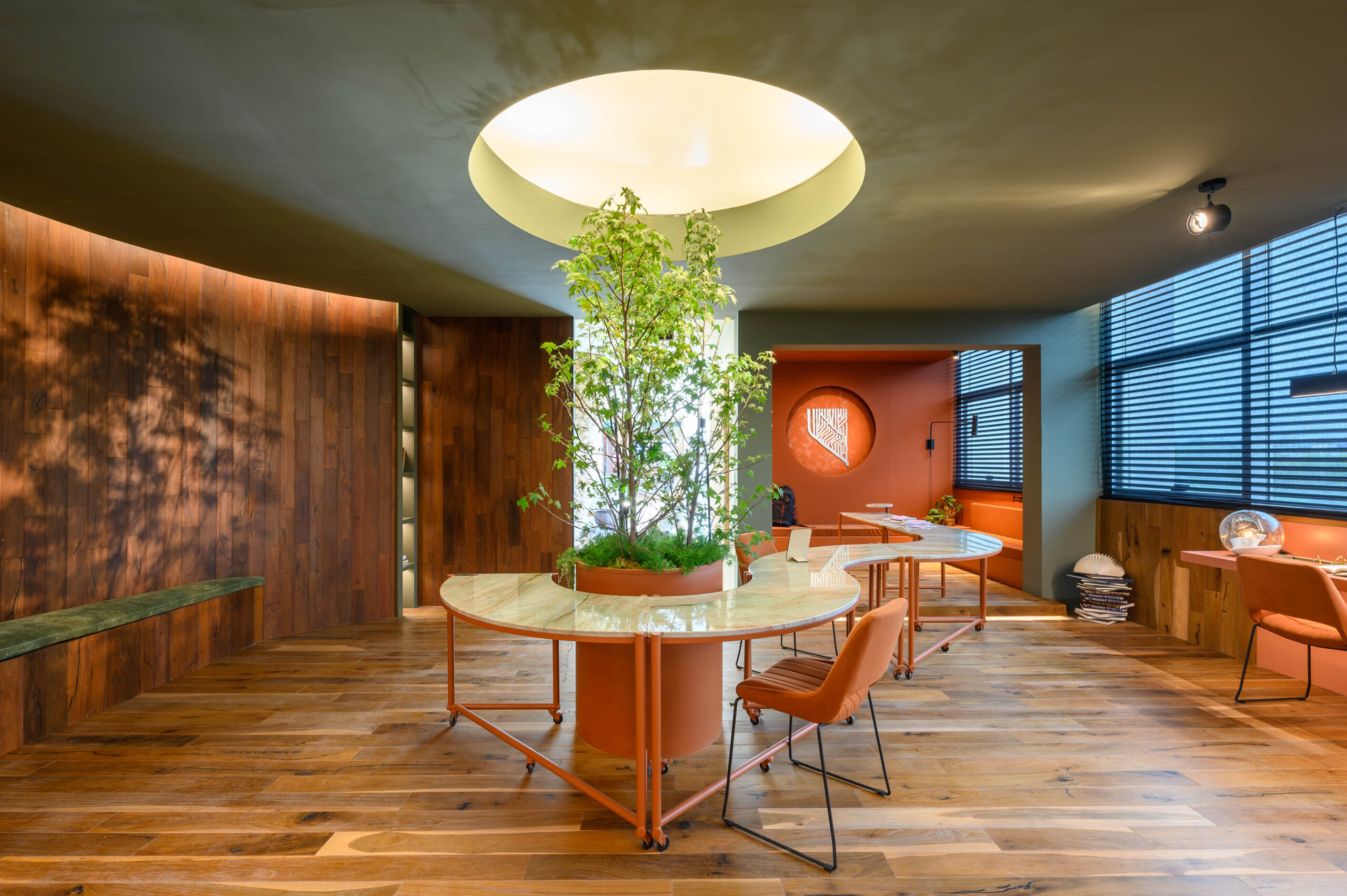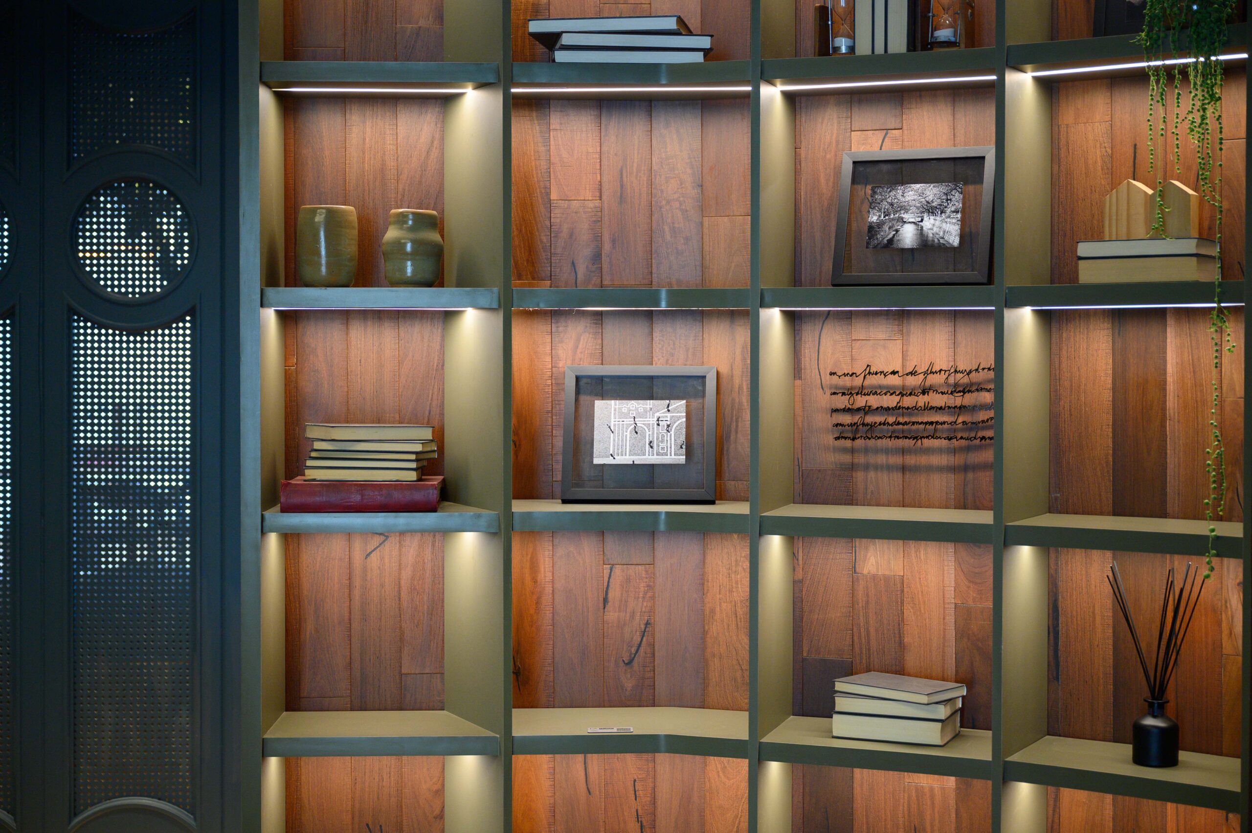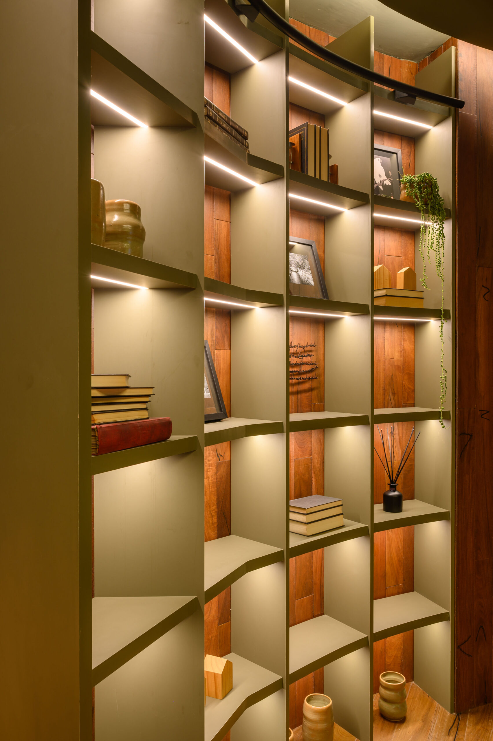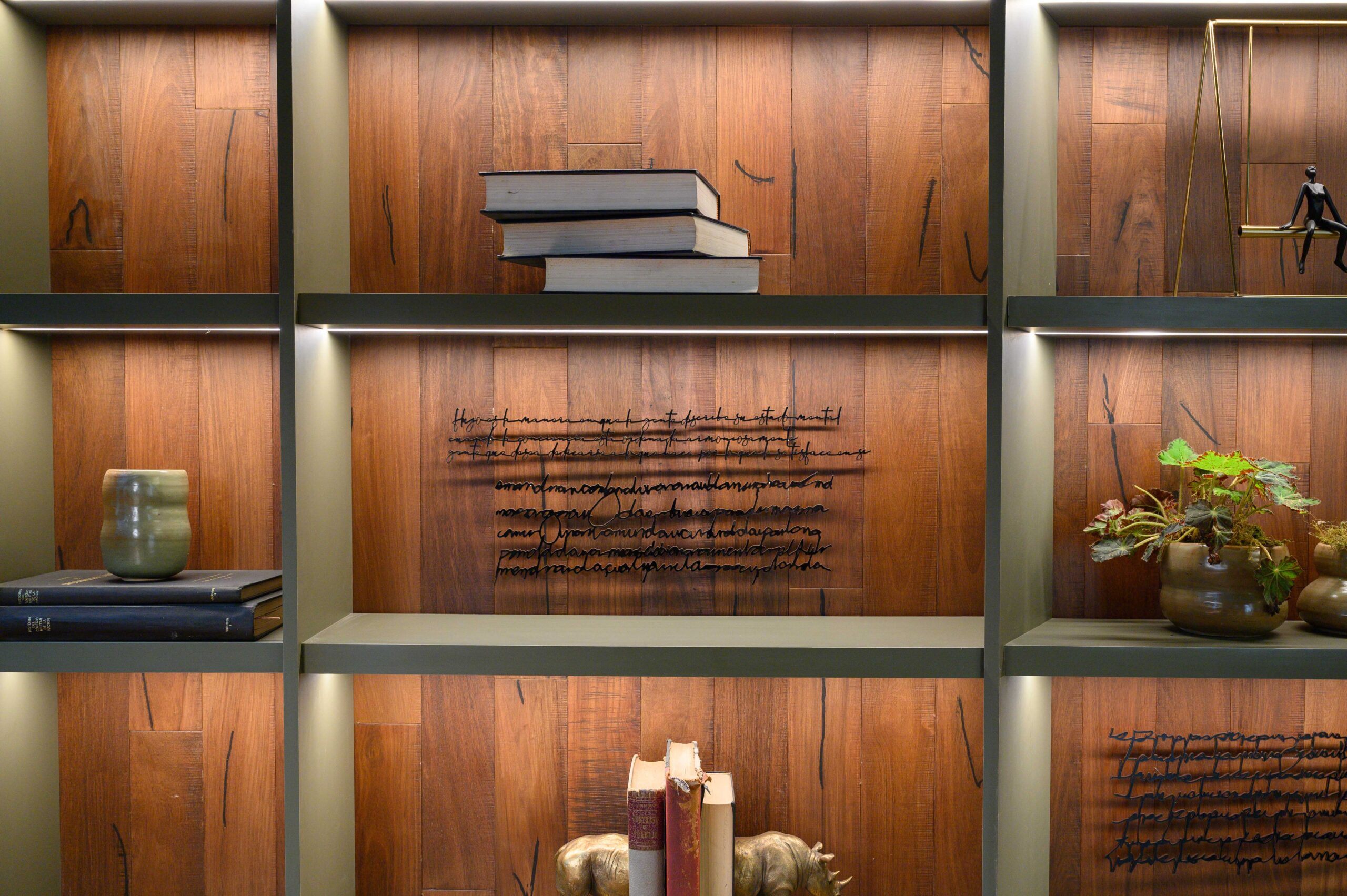 Diseñamos un estudio para un escritor que se inspira en el paisaje de Córdoba y la zona de Manantiales, buscando integrar el entorno natural al interior del estudio. Organizado alrededor de un mobiliario curvo, que remite a la Cañada de Córdoba, el espacio fluye de manera dinámica, guiado por la luz y las sombras que genera la vegetación y los materiales naturales como la cuarcita verde Gaya. Cada área invita a la reflexión y al disfrute de momentos significativos, con espacios flexibles para el trabajo y la distensión. La paleta de colores, que evoca el paisaje cordobés, refuerza la conexión entre el diseño y la identidad de nuestra región.