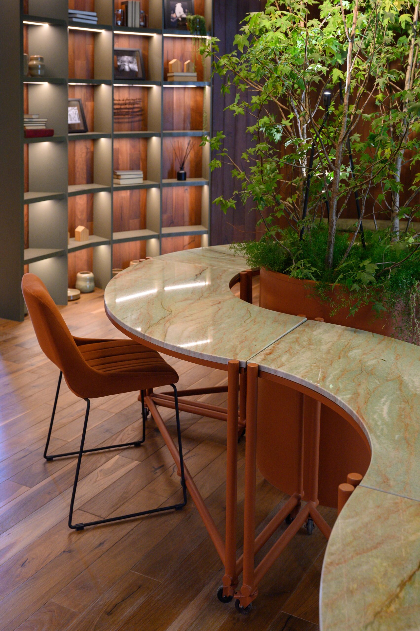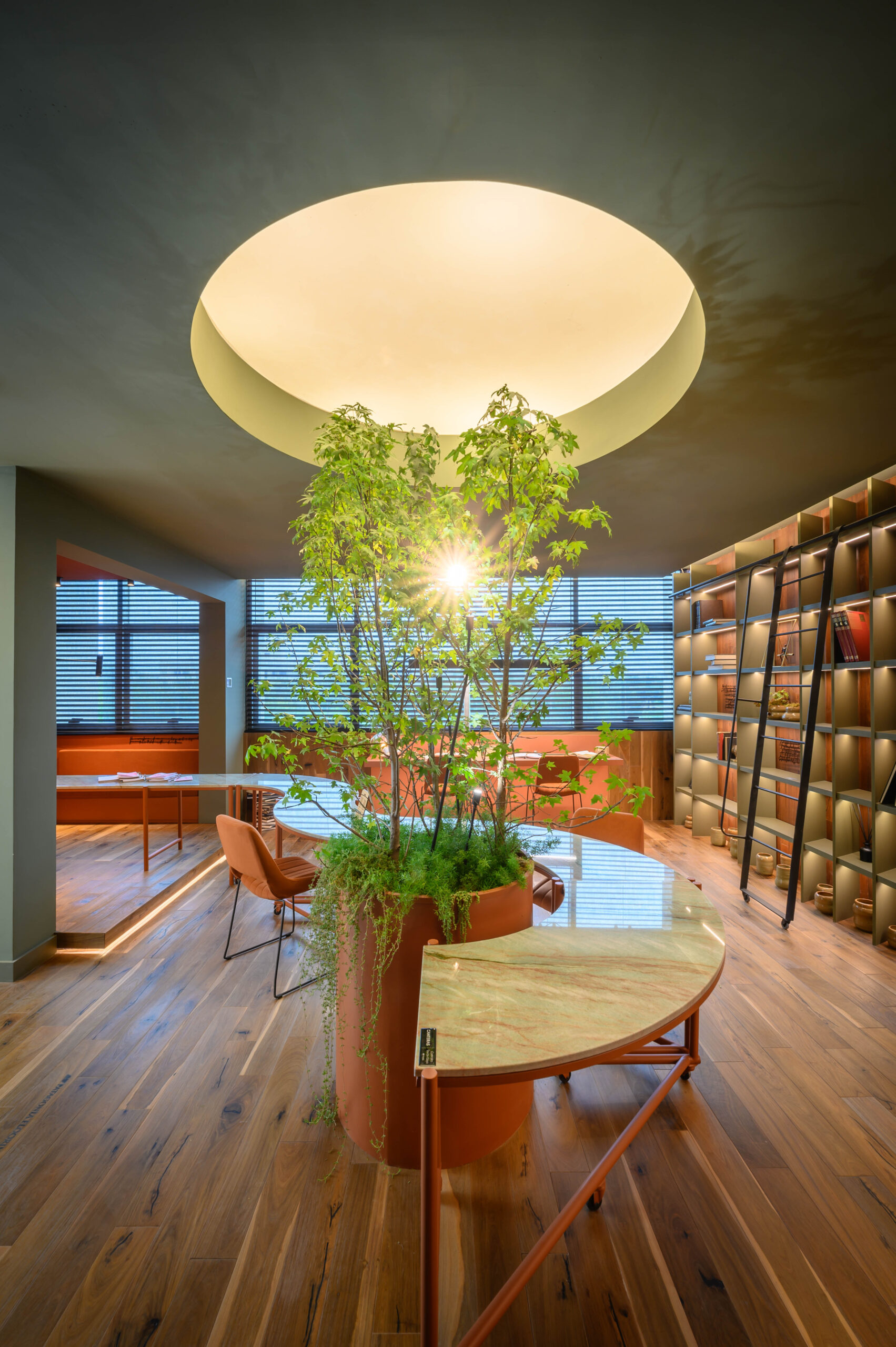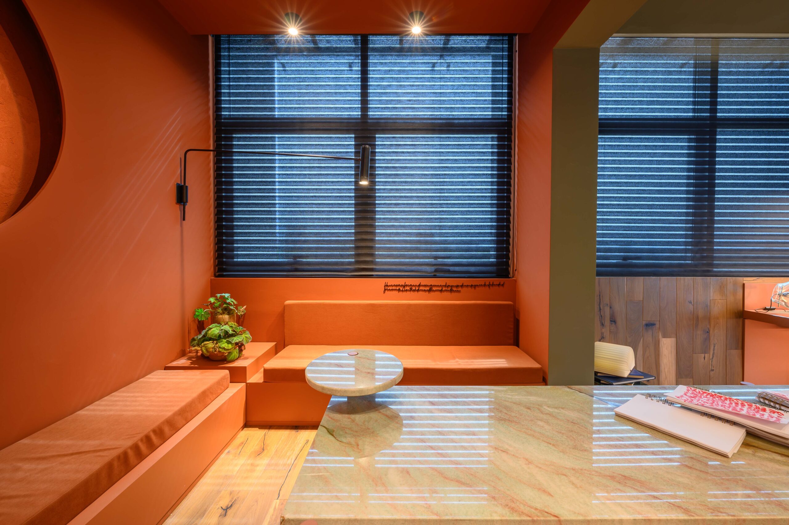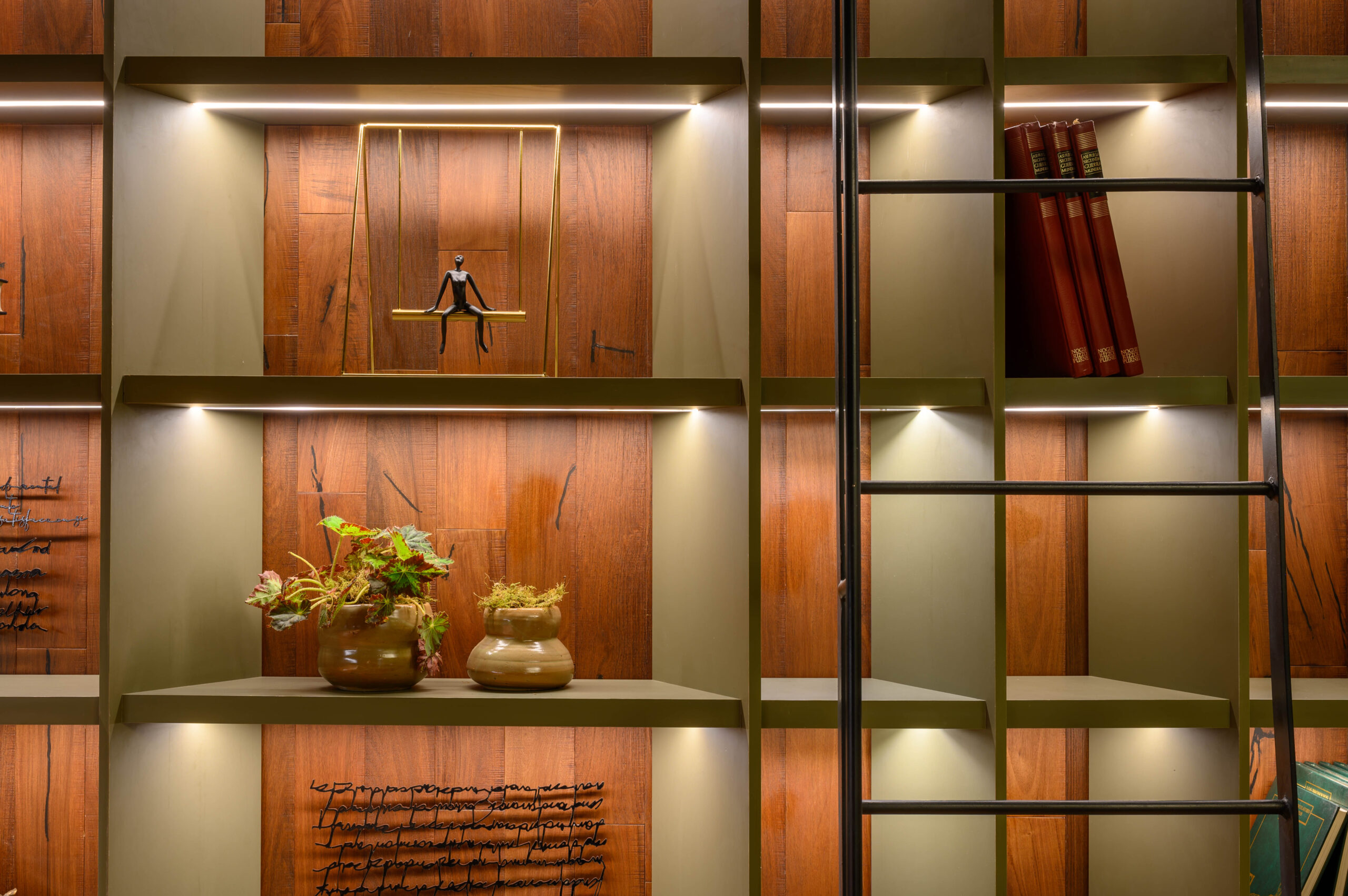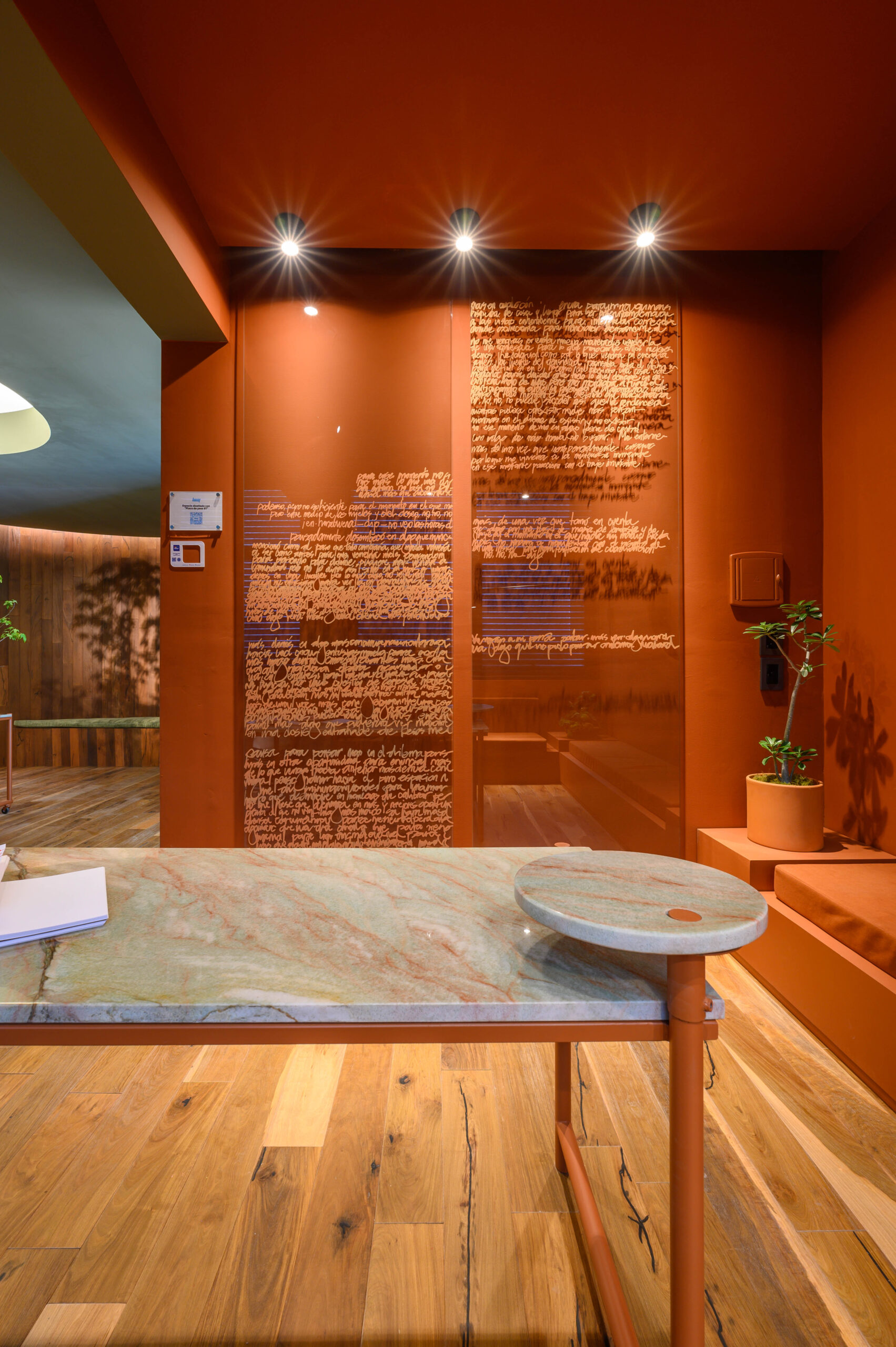 Diseñamos un estudio para un escritor que se inspira en el paisaje de Córdoba y la zona de Manantiales, buscando integrar el entorno natural al interior del estudio. Organizado alrededor de un mobiliario curvo, que remite a la Cañada de Córdoba, el espacio fluye de manera dinámica, guiado por la luz y las sombras que genera la vegetación y los materiales naturales como la cuarcita verde Gaya. Cada área invita a la reflexión y al disfrute de momentos significativos, con espacios flexibles para el trabajo y la distensión. La paleta de colores, que evoca el paisaje cordobés, refuerza la conexión entre el diseño y la identidad de nuestra región.
