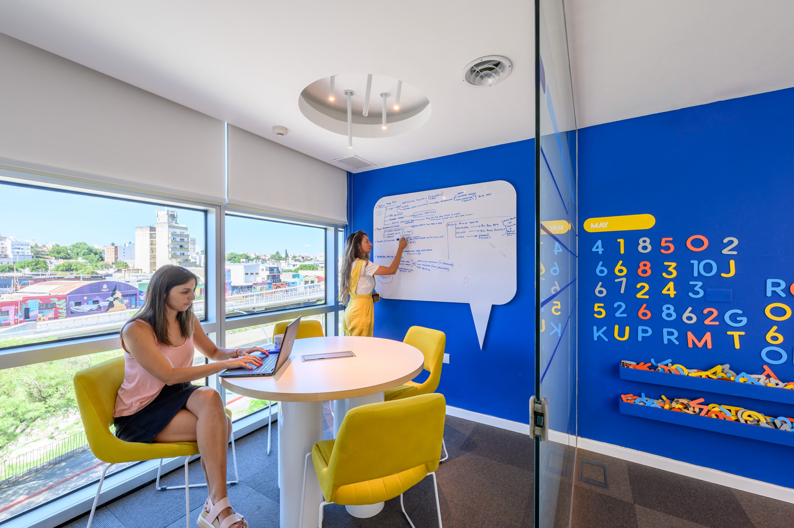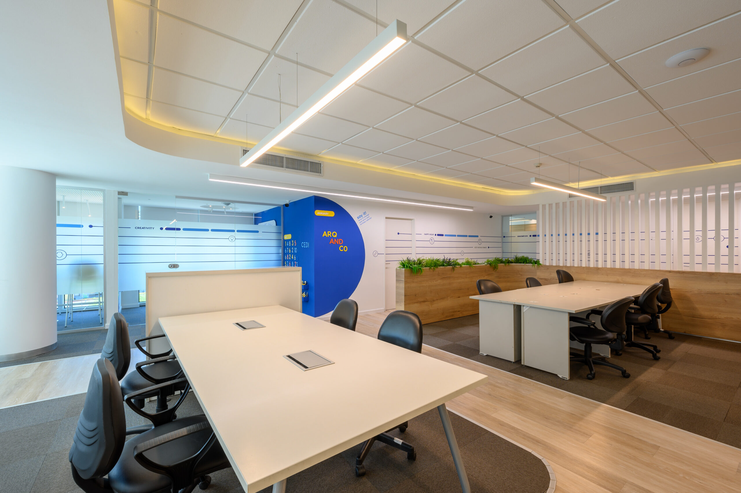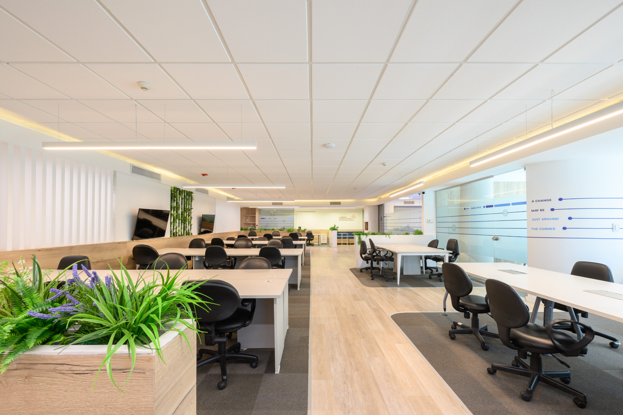 Proyecto corporativo para la empresa CEDI TECH CONSULTING. El desafío fue ampliar y unificar dos oficinas, creando un gran espacio de trabajo, incorporando elementos verdes, iluminación adecuada y espacios intermedios de relax y trabajo abierto. Se diseñaron, también, meeting points para calls privadas, salas de reuniones y el comedor de encuentro.